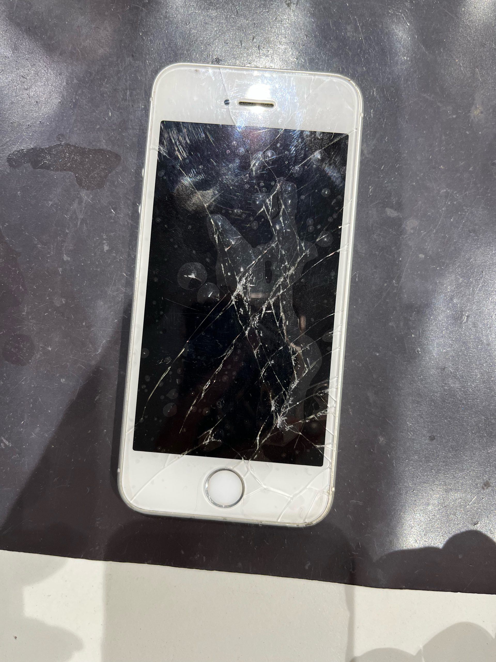 iPhoneを拝見させていただくと画面ガラスがバキバキに割れておりかなり酷い破損状態になっておりました。