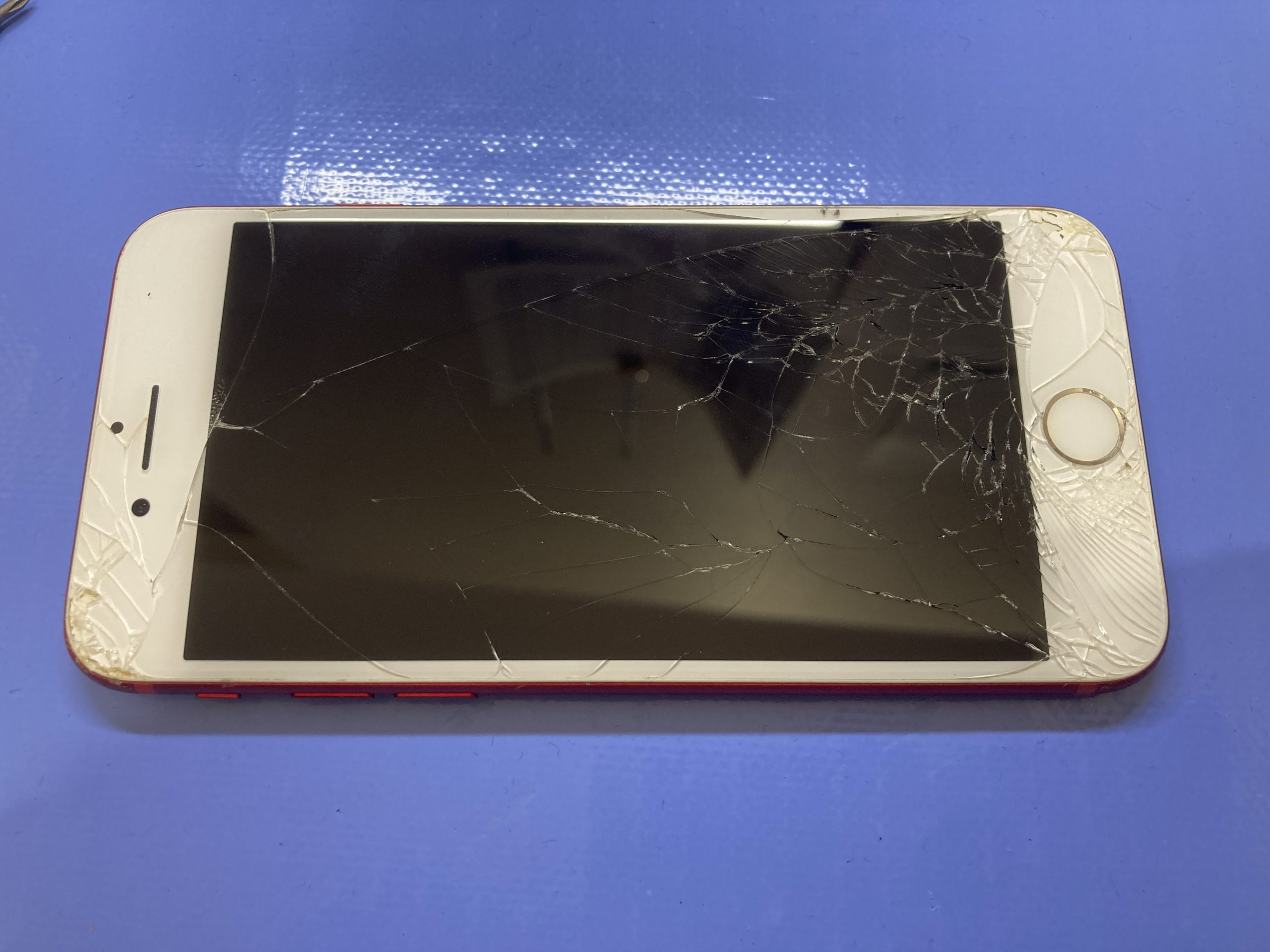 状態は重度の画面割れで内部基盤が見えており早急な修理が必要です。