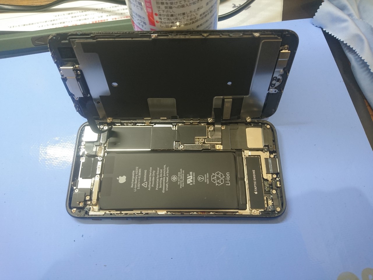 修理は45分程度で画面の交換・パーツの移植・清掃・バッテリーの交換・動作確認を順に行います。