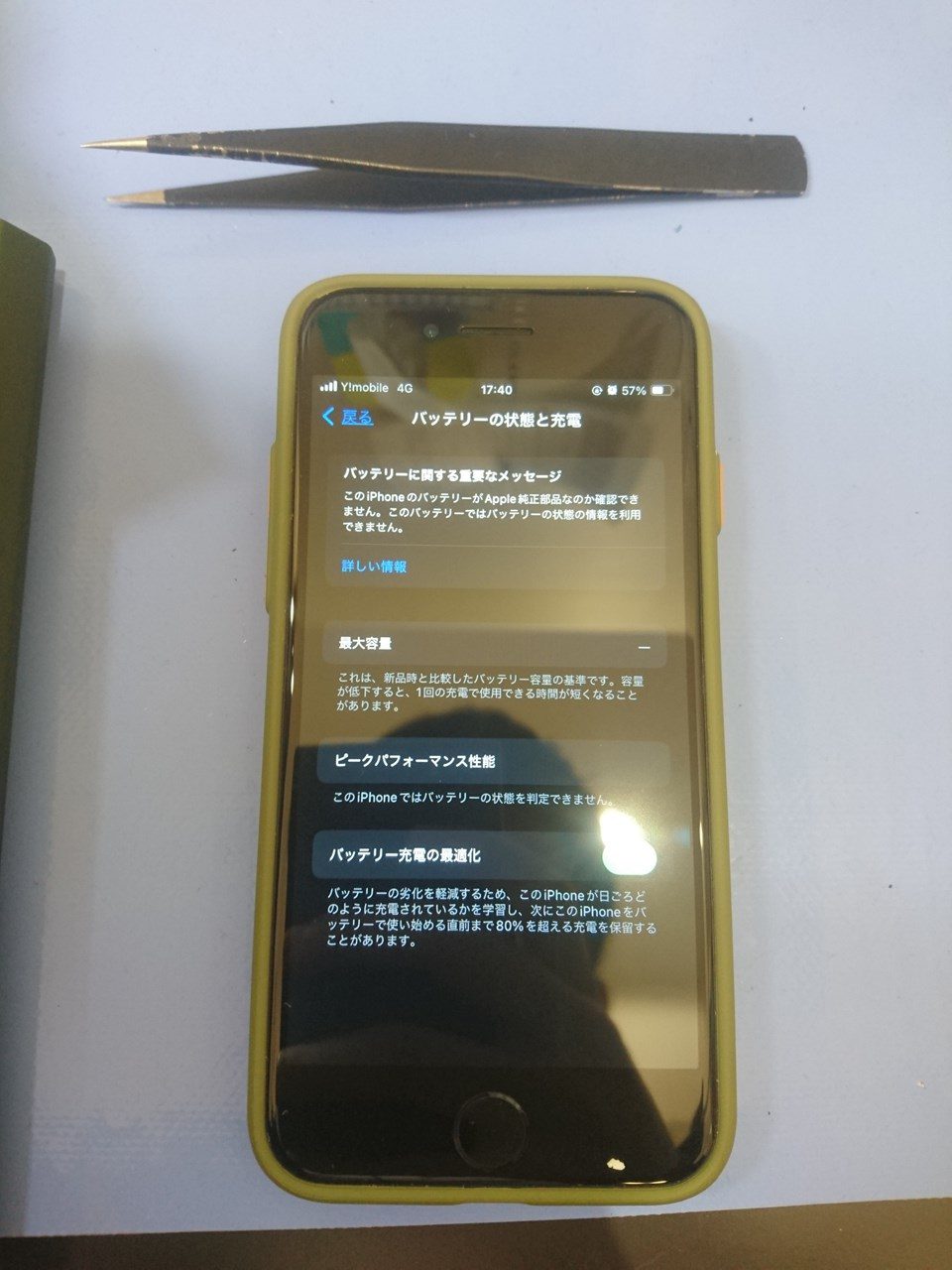 iPhoneはSE2世代からパッテリー交換時に非純正品であると警告が発生します。(使用に際し問題はありません)