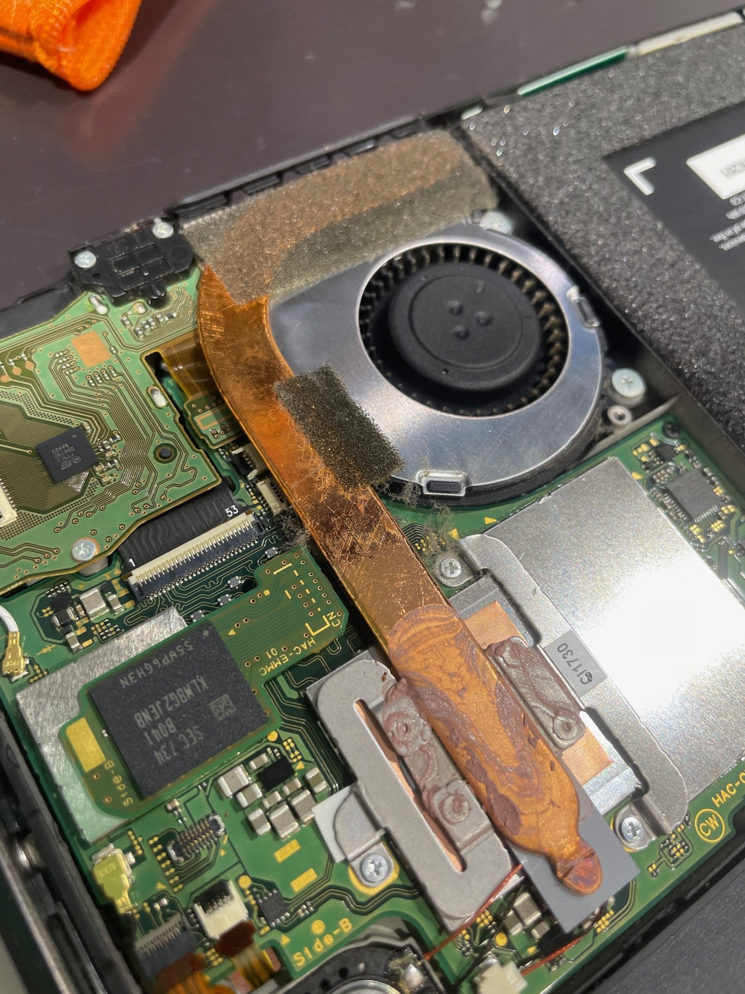 手順としては、裏面のカバーを外してから、ヒートシンク、SDカードスロット、バッテリーコネクタ、ゲームカード基盤、ヒートパイプ、ファンを交換していきます。基盤のコネクタの取り外しだけ、断線しないように注意して作業をします。
