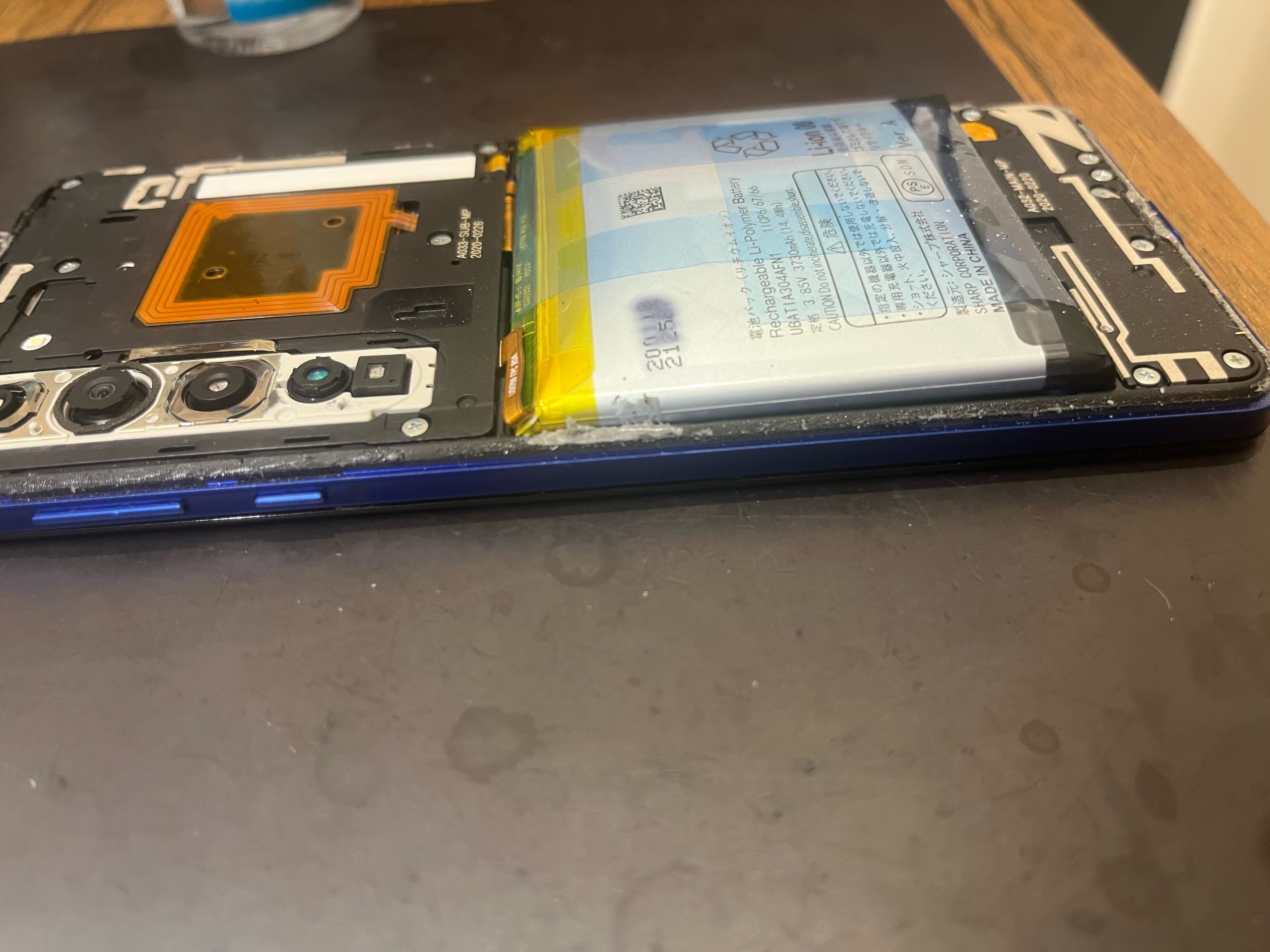 こちらは損傷した画面の隙間から有機物・金属片・水分などが侵入し