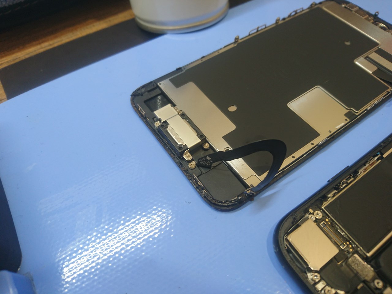 バッテリーの取り外しは念を入れてもう少し加熱し、先にイヤースピーカーを交換します。